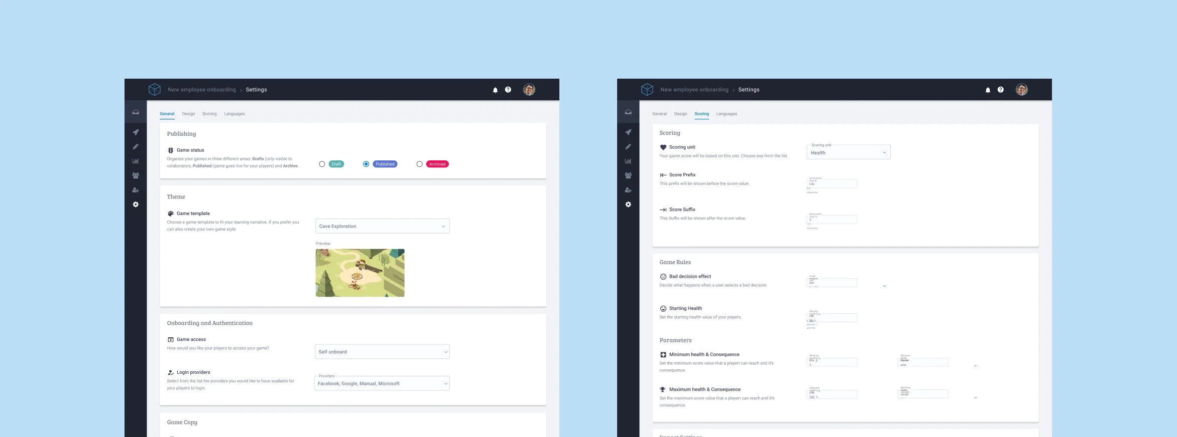 To better monitor the games effectiveness and the players' success, we've decided to break analytics down into different screens and provide a more granular detail over the data.