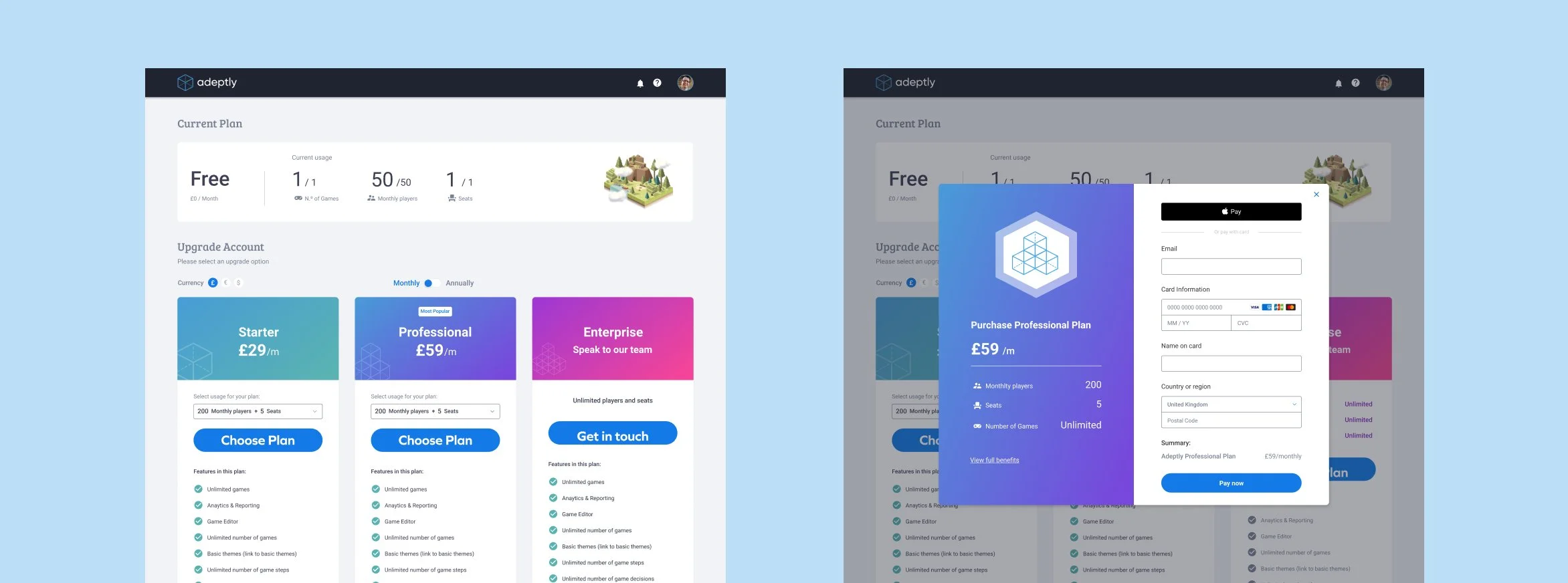 If they wish to engage with this upgrade flow, they would be provided with context about their current plan and their usage. This helps them to compare and contrast in relation to what's included with other plans.